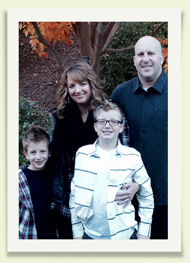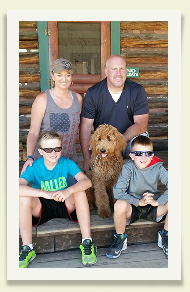 Becky, her husband Darrell, her two sons Caleb and Dylan and their dog, River on their 2016 Graeagle family trip.